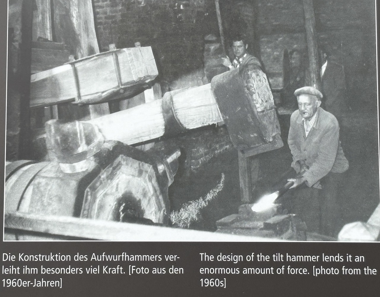 ティルトハンマー(傾くハンマー)と呼んでいて、1960年頃の実際に鍛造していた時の写真も飾ってあった。