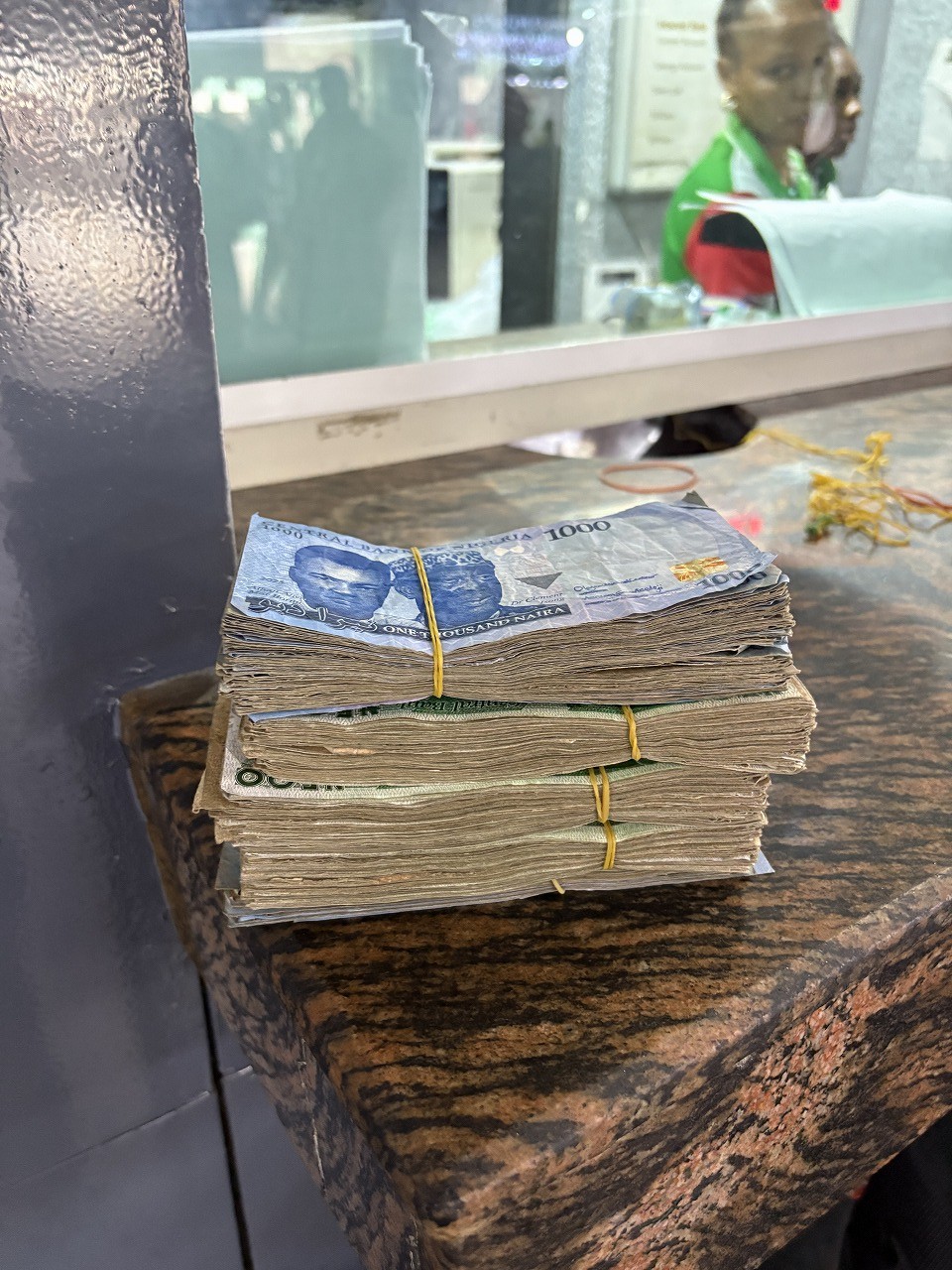 入国も出国も、まともにやっていては恐ろしく大変らしく、最初からプロトコルと呼ばれる現地便利屋さんに事前にサポートを依頼しておいたので、何か物をねだられる事も無く、税関検査でスーツケースを空ける事も無かった。プロトコルへの報酬は50ドル程度。検疫では黄熱病の予防接種済みの黄色いカードの提示が必須である。ナイジェリアに黄熱病があるのだから逆なんじゃないかな、とも思うが何しろ必須と言う事なので、私も予防接種を受けた。一回の接種で生涯有効である。しかしである。後で、ある日本人が言うには、黄色カード無しでも20ドル程度下から出してやれば無事通過できるとの事で呆然。ラゴス市内ではホテルや大きなレストラン以外はクレジットカードが使えないとの事だったので、両替商の窓口で1000ドル両替を試みるも、現地通貨のナイラの手持ちが200ドルしか無いとの事で200ドルを両替する。触るもおぞましい 湿ったぞうきん色のよれよれの紙幣がおよそ20cmの積み上げ高さほども出てきたのである。